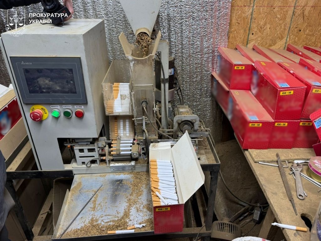 За даними слідства, на початку 2025 року чоловік облаштував у гаражі в Одесі підпільну «фабрику» з виробництва сигарет без будь-яких дозвільних документів та ліцензій.